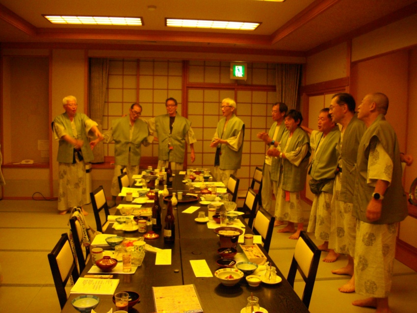 夜は宴会で盛り上がり、吉原氏の歌唱指導もありました。