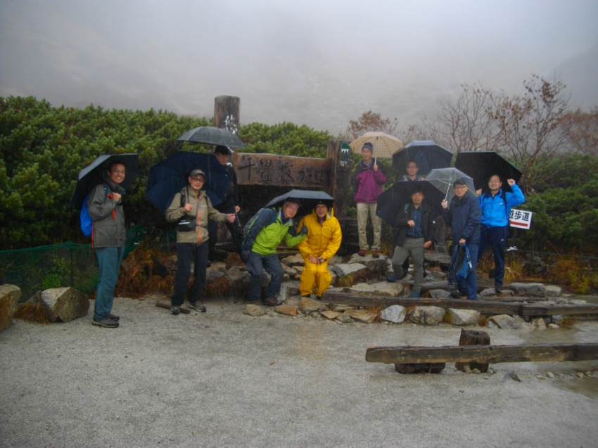 翌日はあいにくの天候でしたが小雨のなか千畳敷を散策し40年ぶりの集合写真を撮りました。